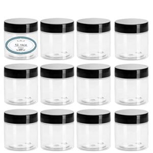 12 Pack 4 oz Plastic Jars with Lids and Labels Clear Plastic Empty Cosmetic Containers for Body Butter, Lotion, Creams, Scrubs, Beauty Products and Slime