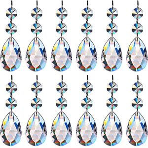 12 Pieces Crystal Prisms Chandelier Clear Teardrop Ornament Pendants Crystal Beads Hanging Glass Crystal Chandelier Prisms for Wedding Party Tree Garlands Decoration DIY Jewelry (2 Inch)