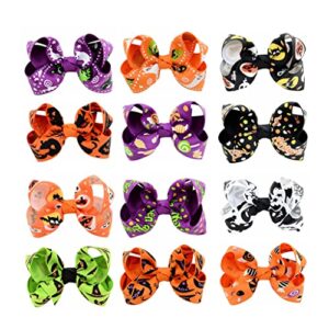 12 Pcs Halloween Hair Clips 3″ Bow Barrettes Hair Pins Pumpkin Spiders Ghost Hairband Cute Accessories for Women Kid Party Supplies (12-Pack)