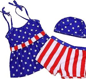 Wrrkayly Toddler Baby Little Girls Swimsuit Outfits 4th of July Swimwear Trunks Cap American Flag Bathing Suit Kid Beachwear
