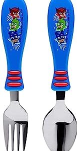Zak Designs PJ Masks Easy Grip Flatware Fork And Spoon Utensil Set ? Perfect for Toddler Hands With Fun Characters, Contoured Handles And Textured Grips, PJ Masks