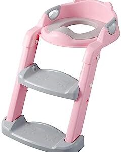 ZZABC YEBPXLMT Soft Base Plastic Children’s Toilet Baby Toilet Training Folding Potty Ladder Toilet Seat Toilet Bowl Step Stool with Backrest (Color : B)