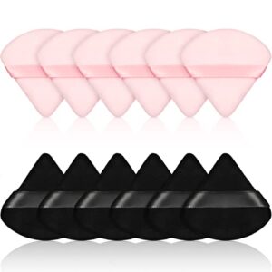 12 Pieces Powder Puff Face Triangle Makeup Puff for Loose Powder Soft Body Cosmetic Foundation Sponge Mineral Powder Wet Dry Makeup Tool(Black, Pink,Small)