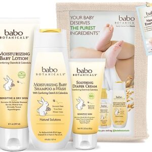 Babo Botanicals Newborn Essentials Set with Organic Calendula and Colloidal Oatmeal, Hypoallergenic, Perfect Baby Shower Gift – 3-Pack