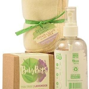 Baby Bits Starter Kit Set – 1 Box of Baby Bits Wipe Solution, 1 Baby Bits Spray Bottle and 3 OsoCozy Organic Flannel Cotton Wipes