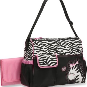 Baby Boom Animal Print Collection – Safari Zebra Print Pink Diaper Duffel Bag for Girls- Large, Roomy Bag, with Wipeable Diaper Changing Pad – Great for Overnights