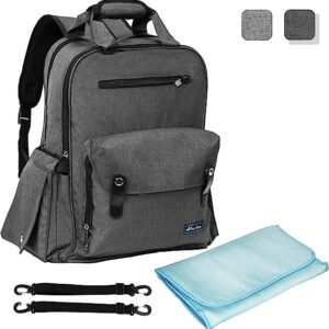 Baby Backpack Diaper Bag | Large Capacity Multi-Functional Travel Nappy Bag for Maternity Mom Dad with Changing Pad, Insulated Pockets, Stroller Straps (Dark Grey)