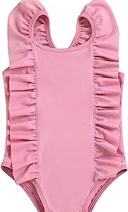 Bagilaanoe Toddler Baby Girl One-Piece Swimsuit Ruffle Sleeveless Swimwear Solid Color Beachwear