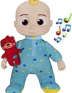 CoComelon Official Musical Bedtime JJ Doll, Soft Plush Body ? Press Tummy and JJ sings clips from ?Yes, Yes, Bedtime Song,? ? Includes Feature Plush and Small Pillow Plush Teddy Bear ? Toys for Babies