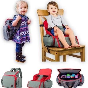 3 in 1 – Cozy Travel Booster Seat / Backpack / Diaper Bag for Your Toddler/Baby. Perfect for Home or Travel. Great Baby Shower Gift (Red/Gray)