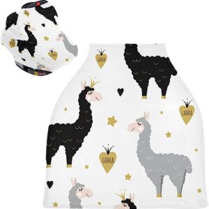 Cute Black Gray Llamas Baby Car Seat Covers – Stroller Canopy High Chair Cover, Multi-use Carseat Canopy, for Baby Boys and Baby Girls Shower Gift