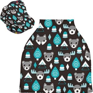 Cute Cartoon Animals Doodle Pattern Baby Car Seat Covers – High Chair Cover Stretchy Nursing Scarf, Multi-use Carseat Canopy, for Baby