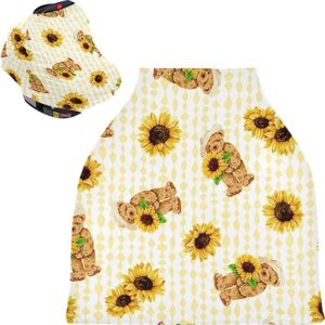Cute Bear Holding Sunflowers Baby Car Seat Covers – High Chair Cover Stretchy Nursing Scarf, Multi-use Carseat Canopy, for Baby