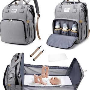 3 in 1 Travel Bassinet Foldable Baby Bed, Diaper Bag Backpack Changing Station, Baby Bag Portable Crib, Waterproof, Large Capacity, Stylish and Durable, Gray