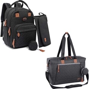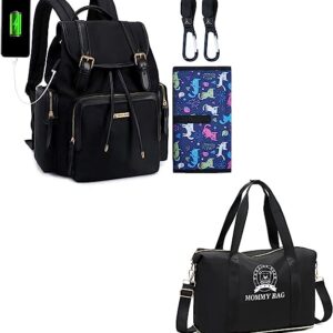 Diaper Bag Backpack(Black),Diaper Bag Tote(Black),Extra Large Capacity Maternity Multifunction Travel Nappy Bag,Waterproof Bag with USB Charging Port,Stroller Hook