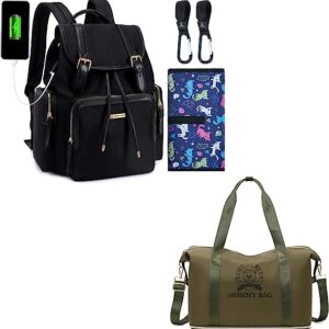 Diaper Bag Backpack(Black),Diaper Bag Tote(Army Green),Extra Large Capacity Maternity Multifunction Travel Nappy Bag,Waterproof Bag with USB Charging Port,Stroller Hook