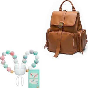 Diaper Bag Backpack Mominside, Pacifier Clip Holder for Boy Girl, Washable Changing Pad, Leather Backpack for Women, Baby Bag Baby Registry Search, Large Capacity, Stroller Straps