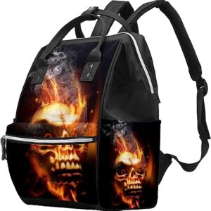 Diaper Bag Backpack, Fire Flame Skull Portable Lager Capacity Travel Nappy Bag for Mom Dad