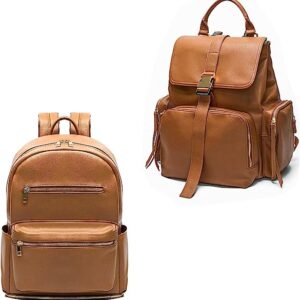 Diaper Bag Backpack Mominside, Leather Backpack for Women, Travel Baby Bag with 15 Pockets Baby Registry Search, Changing mat,Large Capacity for Wet Clothes,4 Insulated Pockets Brown