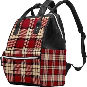 Diaper Bag Backpack, Beige & Red Scottish Plaid Portable Lager Capacity Travel Nappy Bag for Mom Dad
