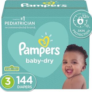 Diapers Size 3, 144 Count – Pampers Baby Dry Disposable Baby Diapers, Giant Pack
