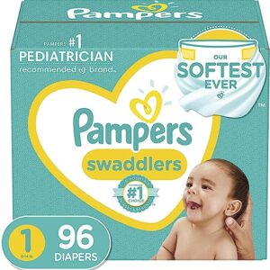 Diapers Newborn/Size 1 (8-14 lb), 96 Count – Pampers Swaddlers Disposable Baby Diapers, Super Pack (Packaging May Vary)