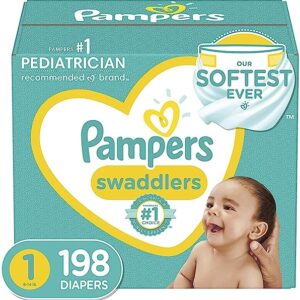 Diapers Size 1 (8-14 lbs) Newborn, 198 Count – Pampers Swaddlers Disposable Baby Diapers, ONE MONTH SUPPLY (Packaging May Vary)