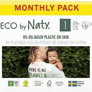 Eco by Naty Baby Diapers – Plant-Based Eco-Friendly Diapers, Great for Baby Sensitive Skin and Helps Prevent Leaking (Size 1, 100 Count)