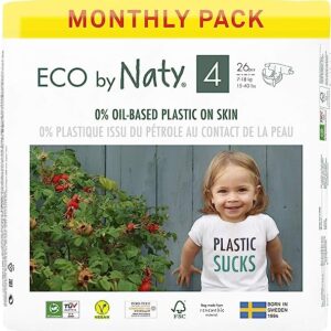 Eco by Naty Baby Diapers – Plant-Based Eco-Friendly Diapers, Great for Baby Sensitive Skin and Helps Prevent Leaking (Size 4, 156 Count)