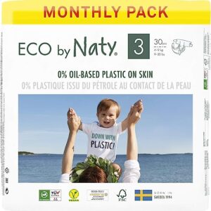 Eco by Naty Baby Diapers – Plant-Based Eco-Friendly Diapers, Great for Baby Sensitive Skin and Helps Prevent Leaking (Size 3, 180 Count)
