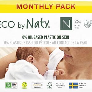 Eco by Naty Baby Diapers – Plant-Based Eco-Friendly Diapers, Great for Baby Sensitive Skin and Helps Prevent Leaking (Newborn, 100 Count)