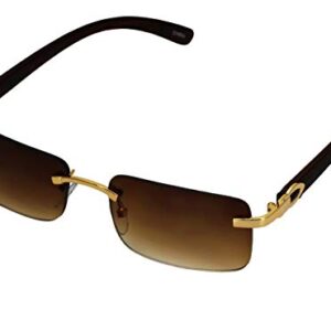 Elite Slim Rimless Rectangular Metal & Wood Art Aviator Sunglasses