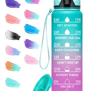Elvira 32oz Large Water Bottle with Motivational Time Marker & Removable Strainer,Fast Flow BPA Free Non-Toxic for Fitness, Gym and Outdoor Sports