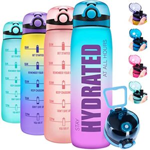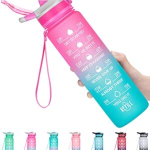 ELYPHINE 32OZ Water Bottles with Removable Straw & Time Marker, Motivational Water Bottle with BPA Free Tritan Material, Leakproof Water Jug for Fitness Sports