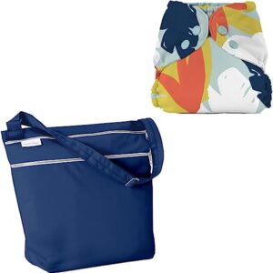 Esembly Waterproof Cloth Diaper Outer Cover (Sea Salt, Size 1) and Day Bag (Ink), Reusable and Washable Stylish Baby Essentials Set