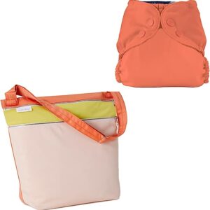 Esembly Waterproof Cloth Diaper Outer Cover (Persimmon, Size 1) and Day Bag (Blush Colorblock), Reusable and Washable Stylish Baby Essentials Set