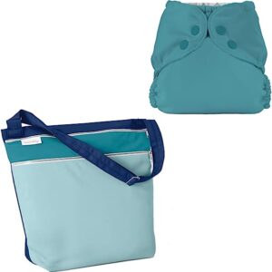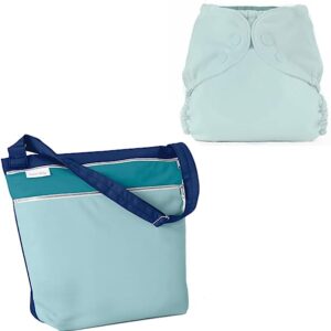 Esembly Waterproof Cloth Diaper Outer Cover (Lagoon, Size 1) and Day Bag (Mist Colorblock), Reusable and Washable Stylish Baby Essentials Set