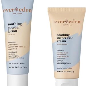 Evereden Soothing Diaper Rash Cream, 3.0 oz & Soothing Powder Lotion, 3.0 fl oz | 2 Item Bundle Set | Clean and Unscented Baby Care | Natural and Plant Based | Non-toxic and Fragrance Free