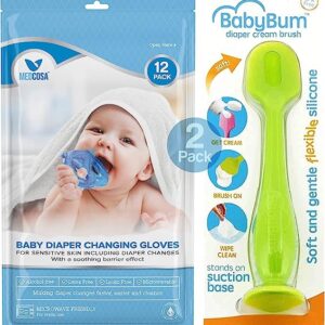 Gentle Baby Diaper Changing Kit: 12 x Baby Wash Gloves and 2 x Silicone Diaper Cream Applicator by Medcosa