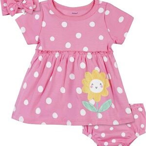 Gerber Baby Girls’ 3-Piece Dress, Diaper Cover and Headband Set
