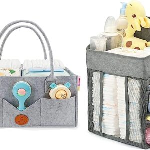 Hanging Diaper Caddy Organizer + Portable Nursery Caddy Bin with Handle