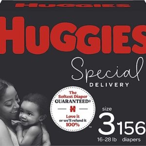 Hypoallergenic Baby Diapers Size 3, 156 Ct, Huggies Special Delivery, Softest Diaper, Safe for Sensitive Skin