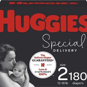 Hypoallergenic Baby Diapers Size 2, 180 Ct, Huggies Special Delivery, Softest Diaper, Safe for Sensitive Skin