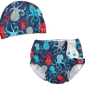 i play. by green sprouts Baby Swim and Sun Cap and Swimsuit Diaper Bundle, Navy Octopus, 18 Months