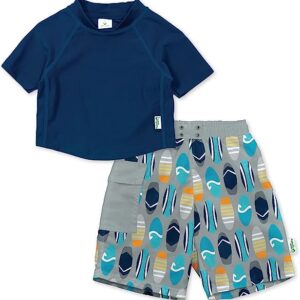i play. by green sprouts Baby-Girls Short Sleeve Rashguard & Pocket Trunks Set with Built-in Reusable Absorbent Swim Diaper