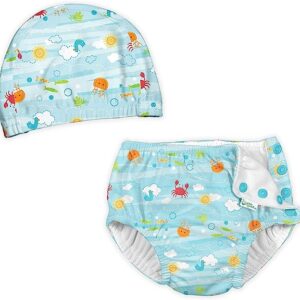 i play. by green sprouts baby-girls Snap Reusable Absorbent Swim Diaper + Swim Cap Set