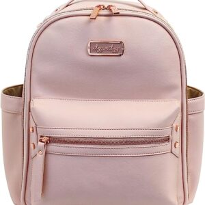 Itzy Ritzy Mini Diaper Bag Backpack ? Chic Mini Diaper Bag Backpack with Vegan Leather Changing Pad, 8 Total Pockets (4 Internal and 4 External), Grab-Top Handle and Rubber Feet, Blush