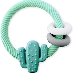 Itzy Ritzy Silicone Teether with Rattle Features Rattle Sound, Two Silicone Rings and Raised Texture to Soothe Gums, Ages 3 Months and Up, Cactus