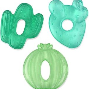 Itzy Ritzy Water-Filled Teethers; Set of 3 Coordinating Cactus Water Teethers; Cutie Coolers are Textured On Both Sides to Massage Sore Gums; Can Be Chilled in Refrigerator; Set of 3 Green Cacti