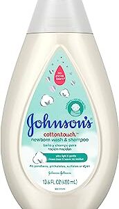 Johnson’s Baby CottonTouch Newborn Body Wash & Shampoo, Gentle & Tear-Free, Made with Real Cotton, Gently Washes Away Dirt & Germs, Sulfate- & Paraben-Free for Sensitive Skin, 13.6 Fl Oz